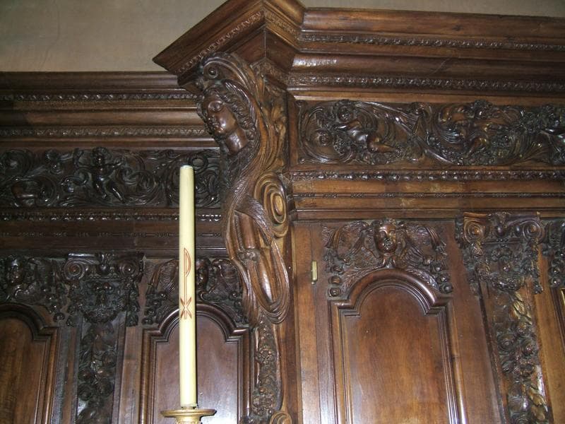 Ils sont divisés en 34 compartiments, surmontés de tête d'anges ailées, par des pilastres décorés de chapiteaux doriques.