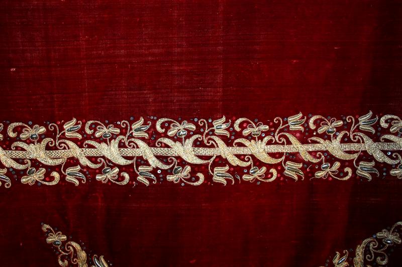 Velours cramoisi avec ornements brodés d'or et d'argent.