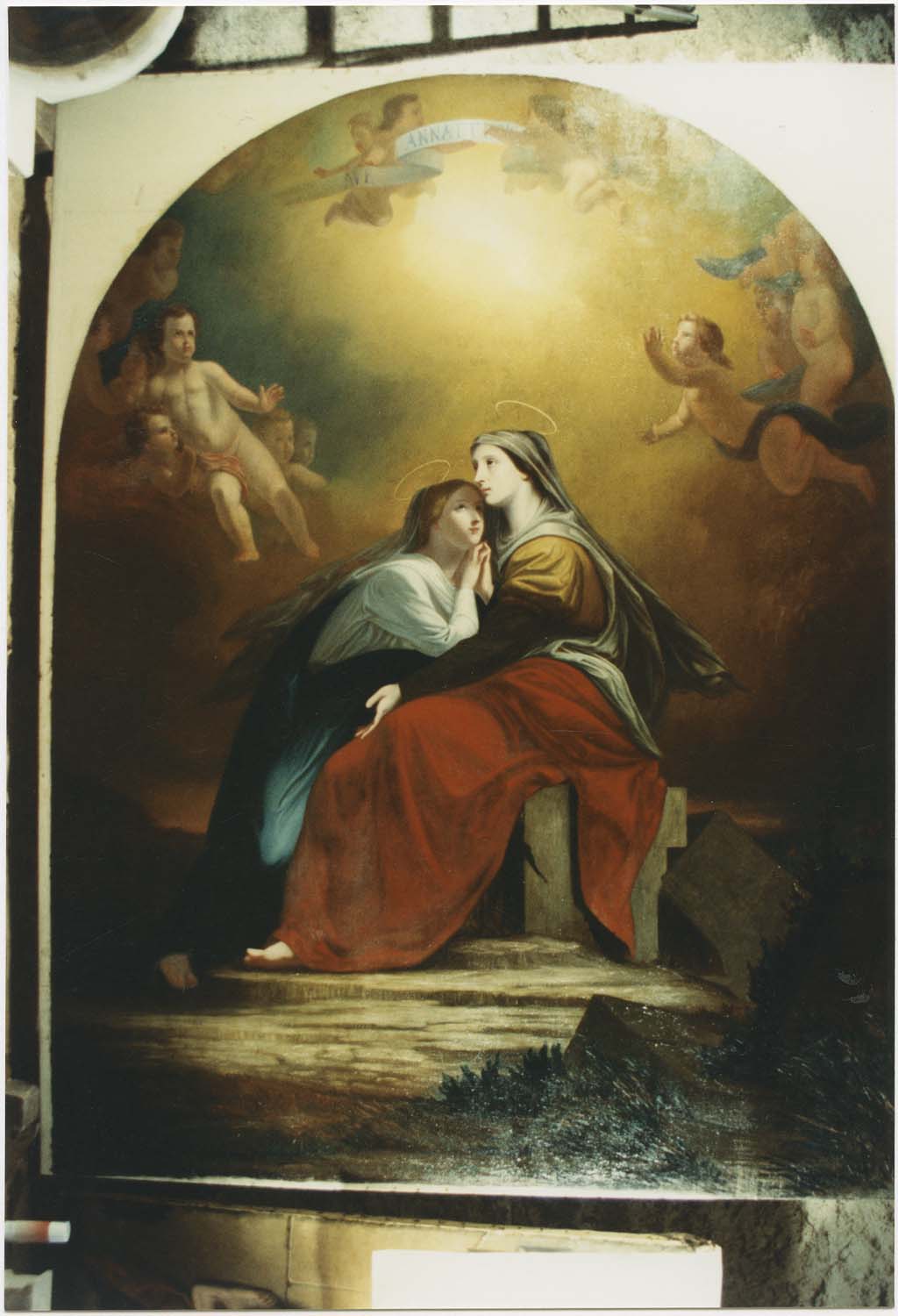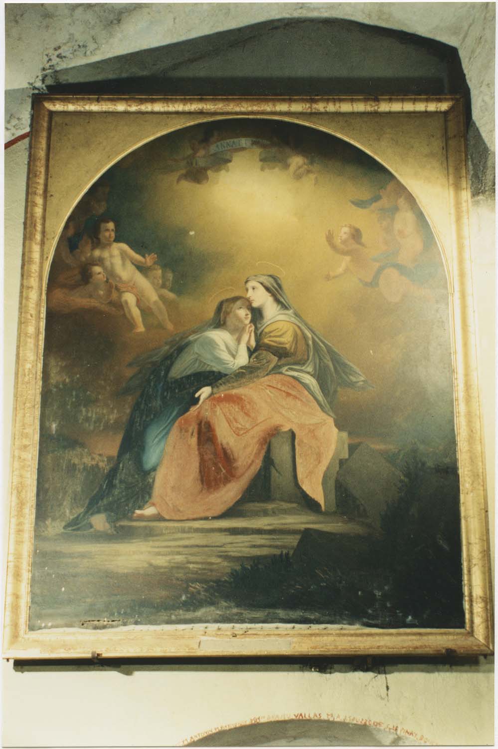 Toile signée et datée en bas à gauche : A. Michel-Villeblanche 1858. Inscription, en haut sur la banderole : AVE ANNA ET MARIA.