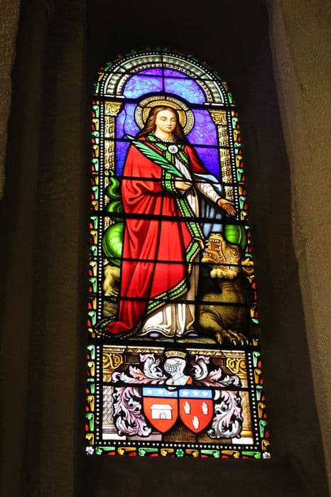 verrière : sainte martyre terrassant un monstre