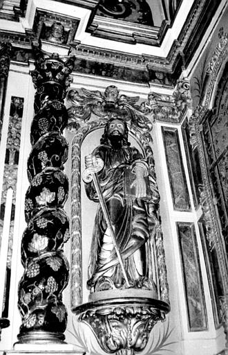 Décor du choeur : retable principal et deux retables latéraux du Rosaire et du scapulaire.