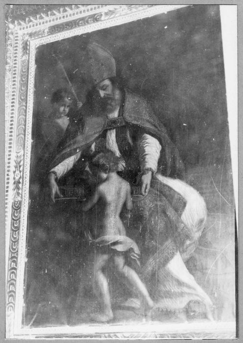 Le tableau de saint Ambroise est une copie signée du peintre H. Poublan d'après Le Guerchin.