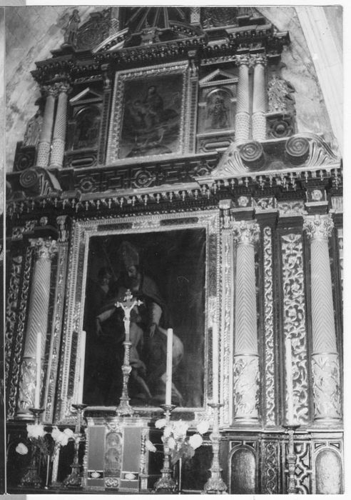 POP | Plateforme ouverte du patrimoineautel, tabernacle, croix et 6 chandeliers d'autel, retable, tableau d'autel : saint Ambroise évêque, et 3 tableaux : la Vierge de l'Apocalypse, saint Laurent et sainte Catherine d'Alexandrie (maître-autel)