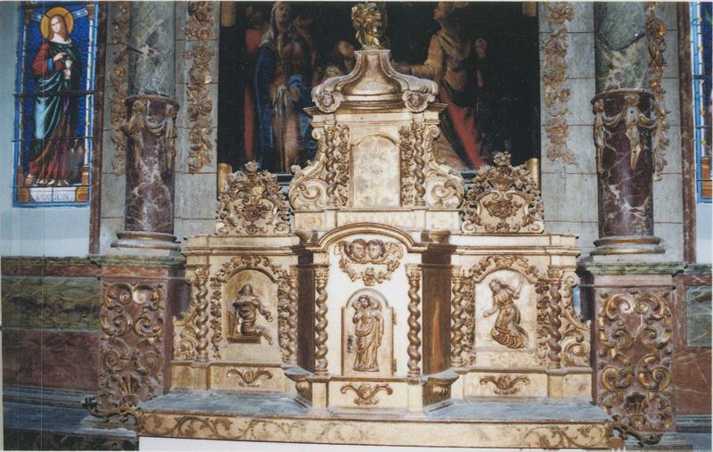 Autel, retable et tabernacle par Griaudy (Inventaire Vic-Billi), avec les boiseries du 17e siècle. Tableau du 18e siècle.