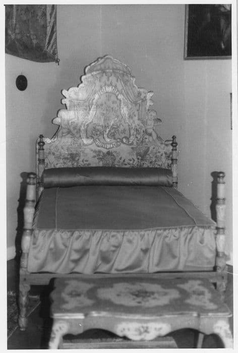 Lit avec décor peint sur bois.