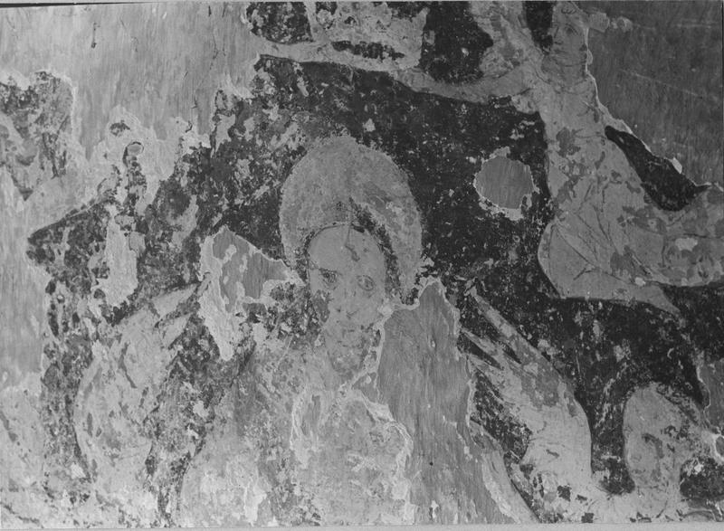 Les peintures ont été découvertes à la suite d'un sondage. Le décor a été appliqué sur la maçonnerie romane d'une abside semi-circulaire.