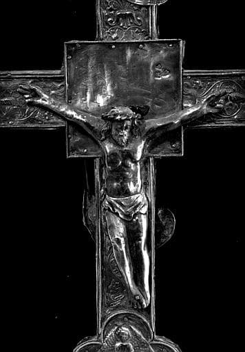 Croix processionnelle (d'un côté le Christ, de l'autre Saint Michel).