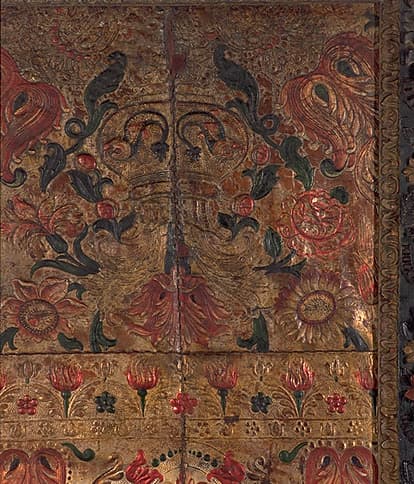 Cuir de Cordoue repoussé et peint.