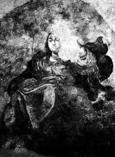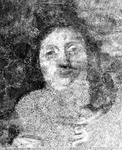 Fragments de peintures murales provenant de la nef, déposés et transposés, six panneaux dont deux représentant la Vierge et deux des personnages de l'ancienne Loi.