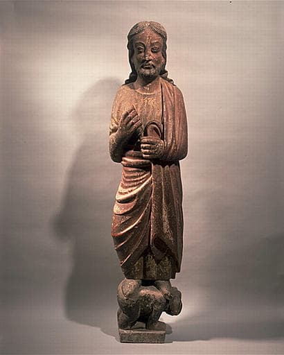 groupe sculpté : apôtre debout sur un animal (un)