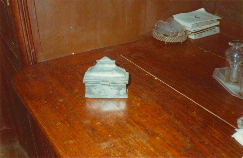 A l'intérieur, trois petites boîtes contenant les huiles consacrées.
