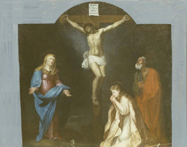 Tableau de 1787. Dans la Crucifixion, Vierge d'après Charles Le Brun (oeuvre diffusée par la gravure).