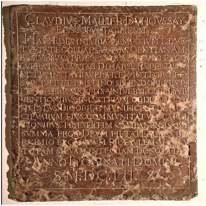 Plaque en marbre noir portant une inscription gravée.