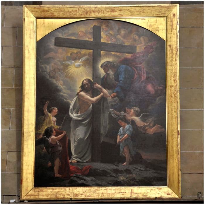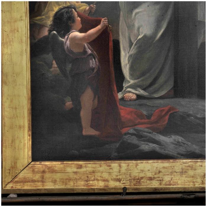 toile (support) : peinture à l'huile ; bois : doré à la feuille