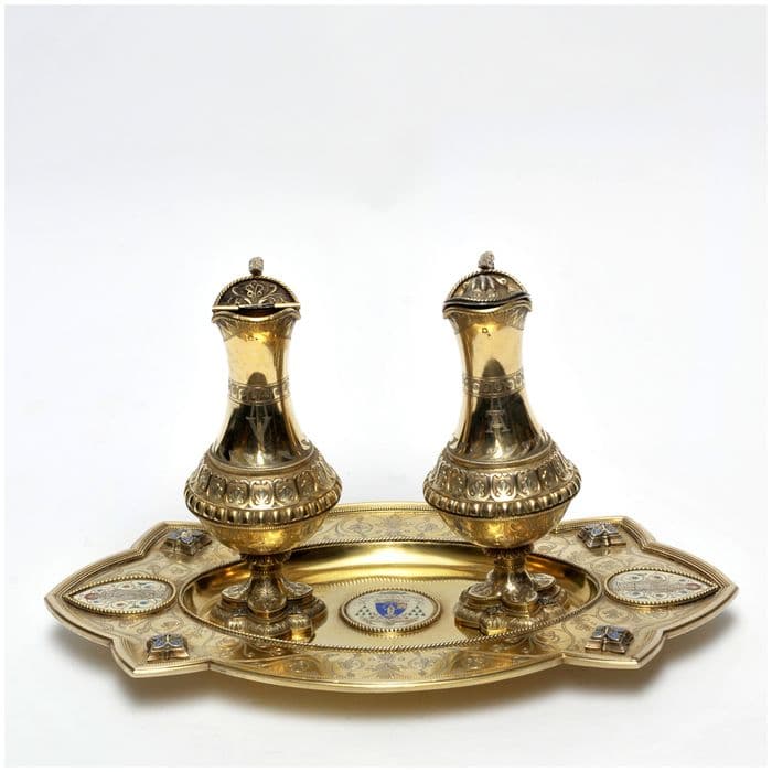 chapelle de monseigneur Billière : calice ; patène ; aiguière ; bassin ; burettes ; plateau à burettes