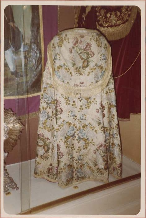 Chape en brocard blanc à décor floral rebrodé de fils d'or et d'argent.