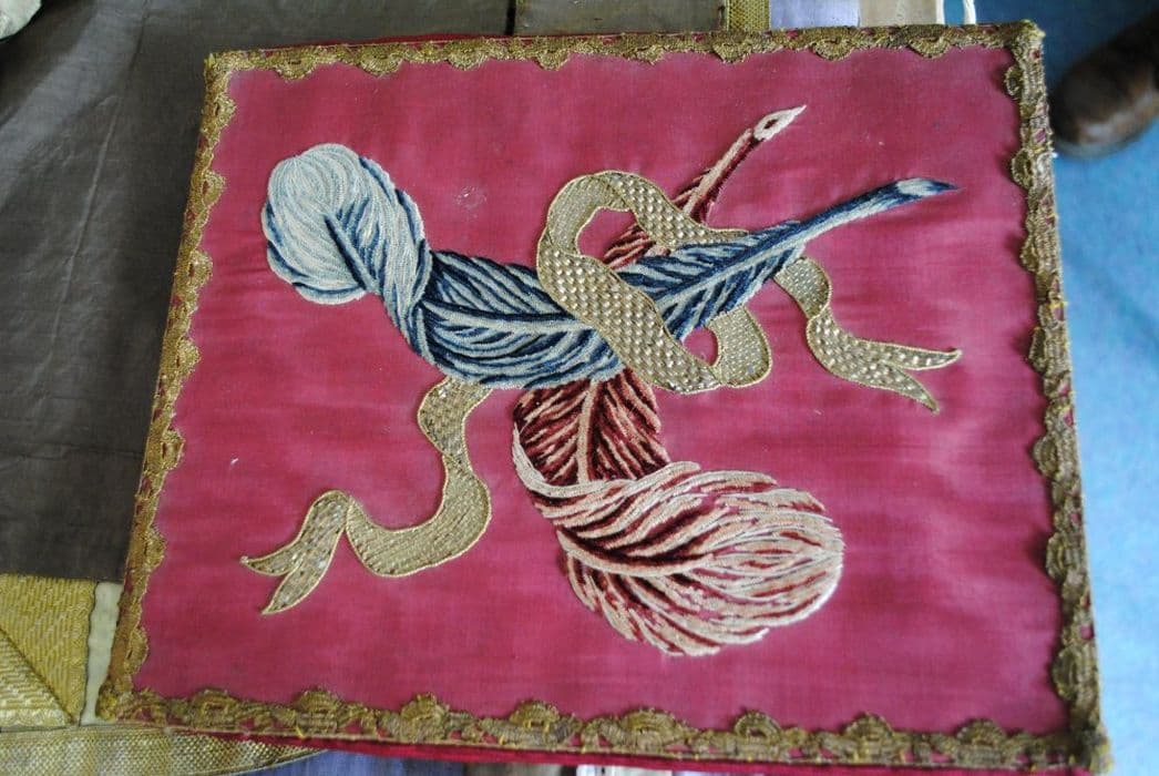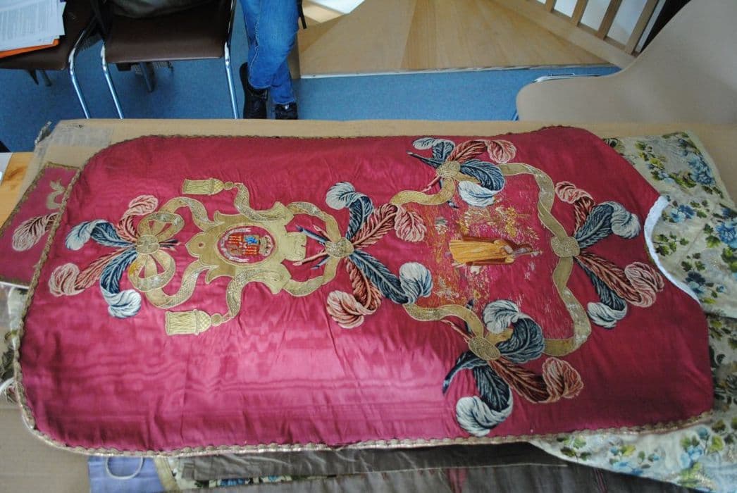 POP | Plateforme ouverte du patrimoinechasuble, étole de clerc, manipule, voile de calice et bourse de corporal (ornement rouge)