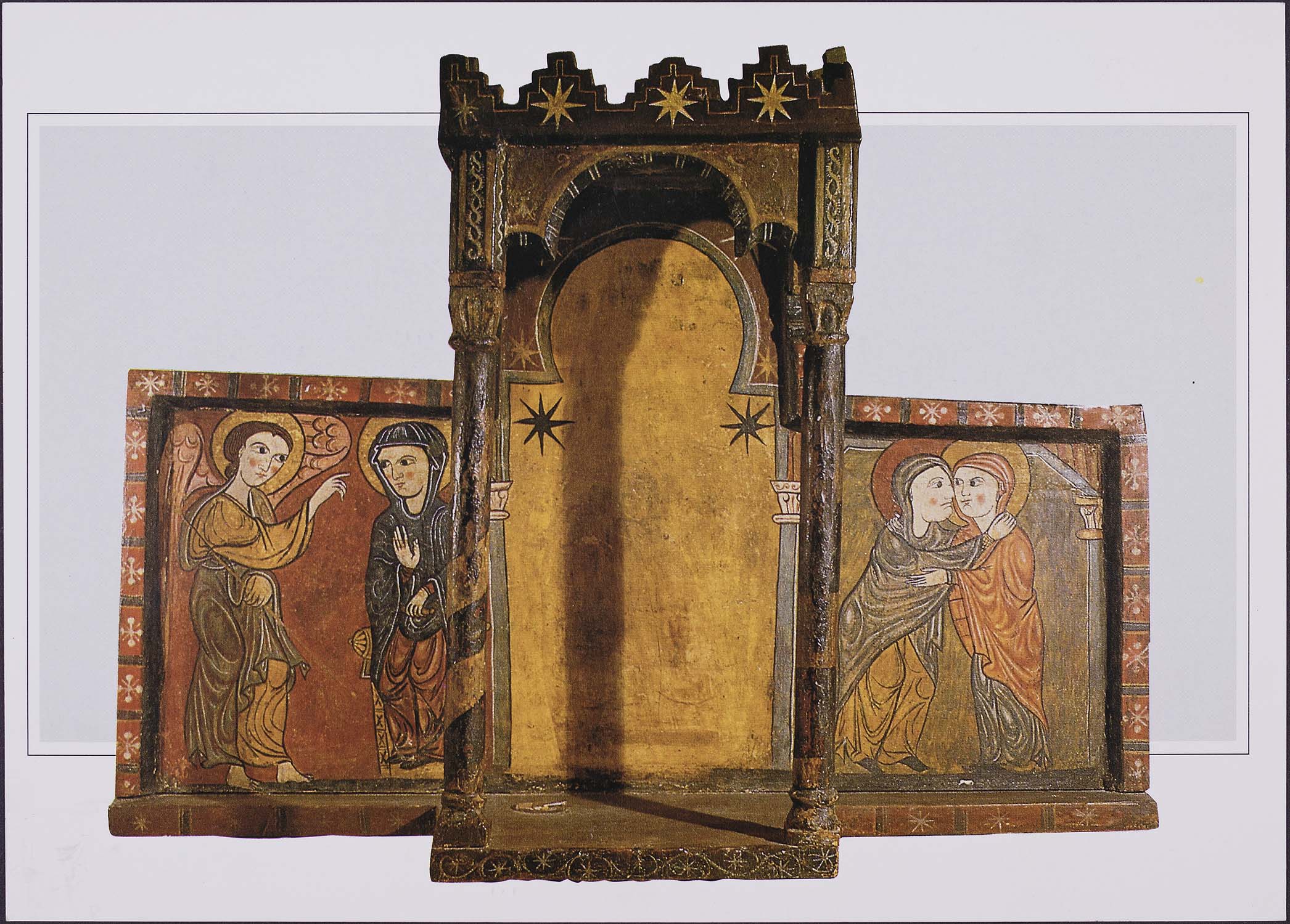 Les peintures des panneaux latéraux, l'Annonciation à gauche, la Visitation à droite, reflètent les influences byzantines qui s'exerçaient en Roussillon et en Cerdagne dans la première moitié du 13e siècle. Le dais central, qui surmonte la statue de la Vierge, est couronné de créneaux ; il s'ouvre par un arc tréflé, cependant que se dessine sur le fond, derrière la Vierge, un arc outre-passé. L'attitude de la Vierge et de l'enfant est celle que leur avait prêtée le 12e siècle, mais la simplification du modelé par la disparition des plis superficiels, manifeste l'évolution du style.