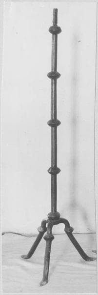 Ces chandeliers sont constitués d'une tige à cinq noeuds plantée sur trois pieds annelés.