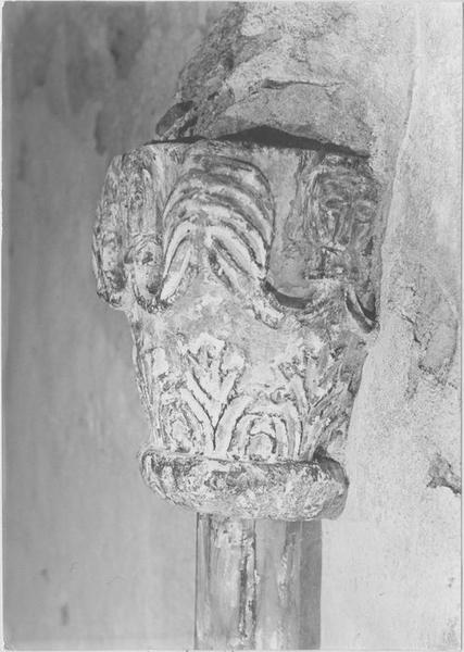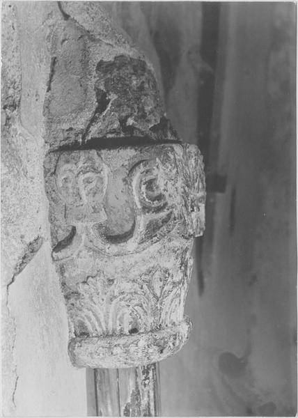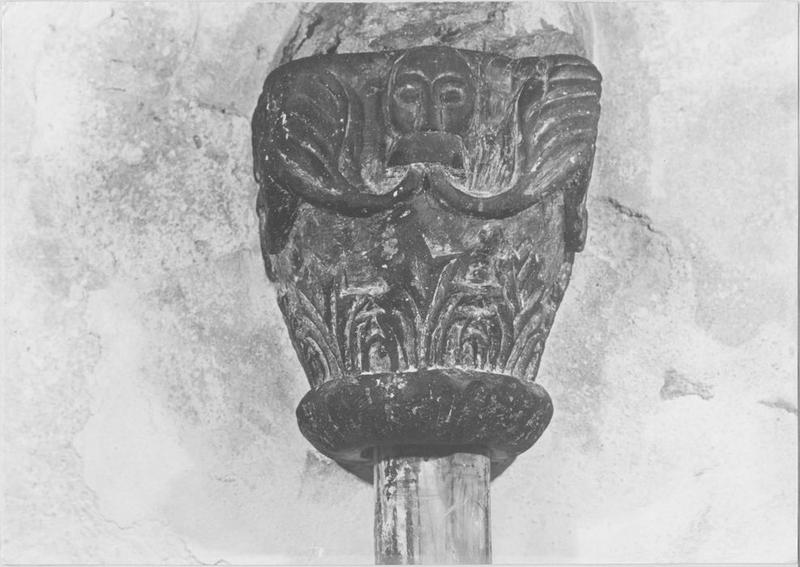Actuellement, le chapiteau est en partie encastré (inversé) dans le mur d'une chapelle où il sert de socle à un grand Christ de la fin du 18e siècle.