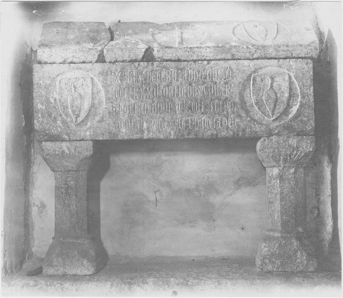 Monument funéraire. Petit sarcophage monté sur pieds. Auge rectangulaire portés sur deux colonnettes et recouvert d'un couvercle à deux rempants. A chaque extrémité de la face antérieure, les armes du défunt, entre les quelles est l'épitaphe de Jaubert de Fuilla.