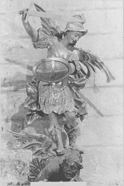 groupe sculpté : saint Michel terrassant le démon