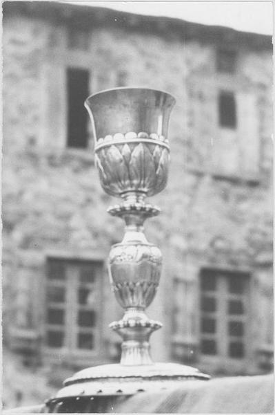 inscription : Francisco Maler 1708 (pied). Date : 1708 (pied). Poinçon de maître : A. Gouzi avec couronne, maître orfèvre différent de Michel Guzi, orfèvre de Toulouse qui travailla à Perpignan entre 1678 et 1706.