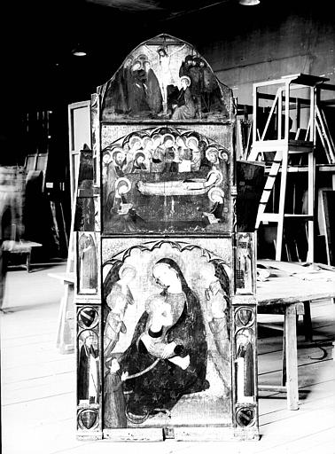 2 tableaux : la Mort de la Vierge et le Christ en croix, Vierge allaitant dite Notre-Dame des anges