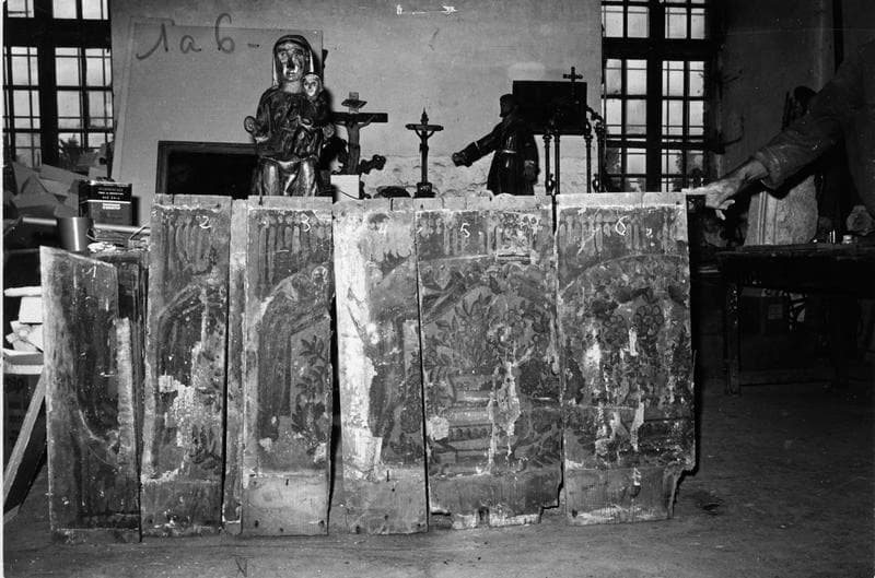POP | Plateforme ouverte du patrimoineretable, 9 tableaux, prédelle de la Vierge : la Crucifixion