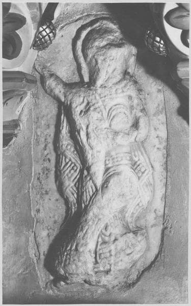 mur septentrional, encastré au-dessus des fonts baptismaux