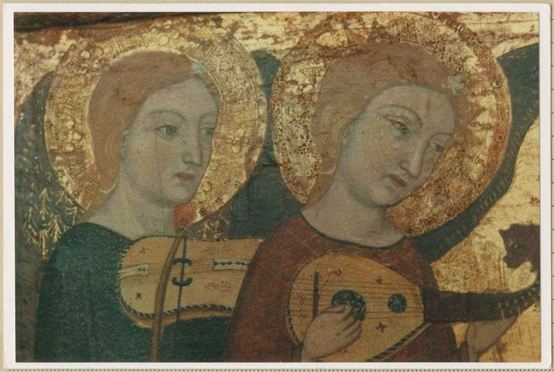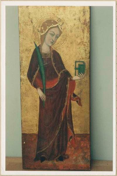 Six panneaux et un fragment de socle provenant du démembrement d'une armoire eucharistique. Meuble à vantaux.