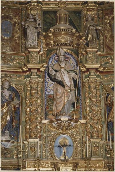 retable de Saint Saturnin, 9 statues : Saint Saturnin, 4 bas-reliefs, autel, 4 gradins d'autel, tabernacle, lambris de hauteur en cul de four (maître-autel)