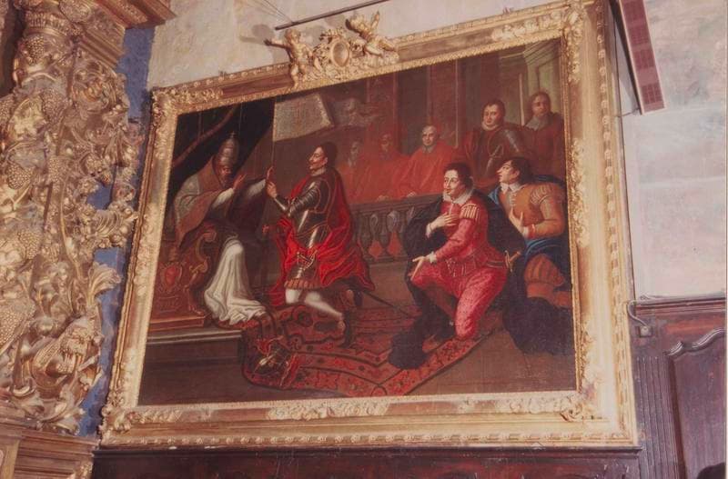 POP | Plateforme ouverte du patrimoinedeux tableaux et leurs cadres : L'entrevue de Pie V et Don Juan d'Autriche, La bataille de Lépante dite le Triomphe du Rosaire