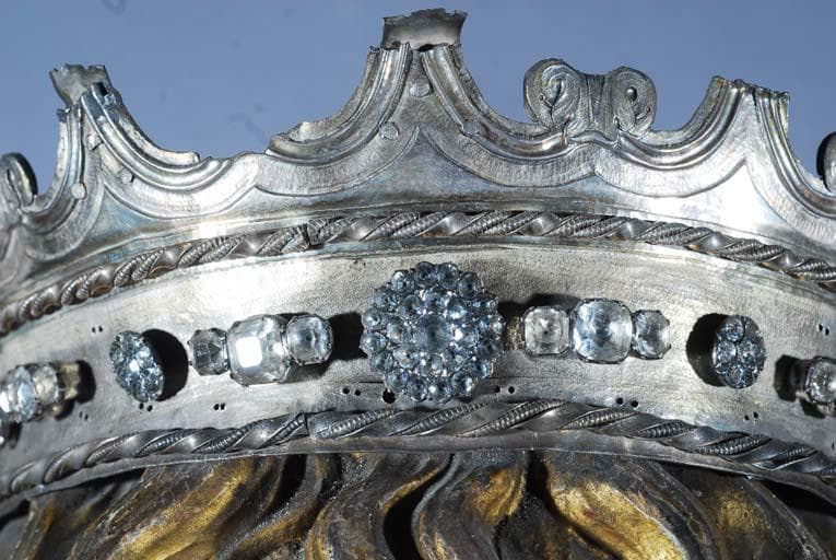 bois : taillé, peint, doré ; métal : argenté
