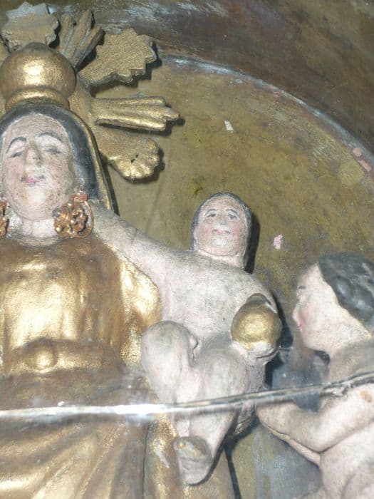 groupe sculpté : Vierge à l'Enfant et angelots dite Notre Dame du Coral, dans sa boîte dite capelleta