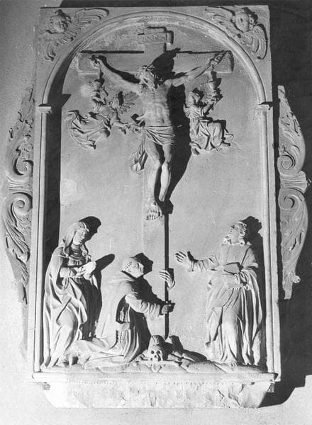 grès (gris) : taillé, décor en haut relief