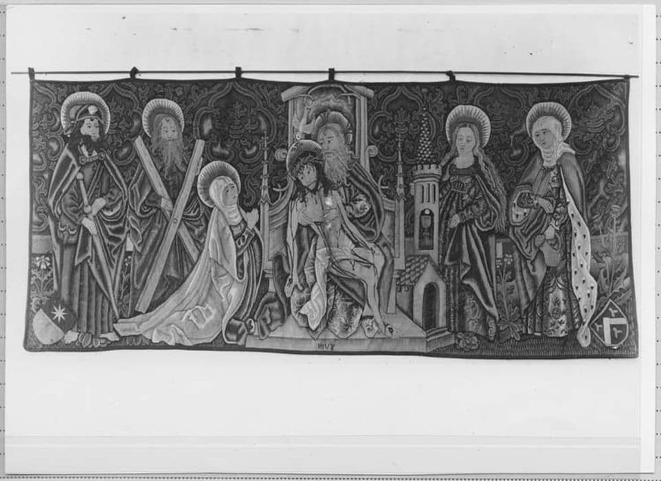 10 pièces murales : Annonciation, Crucifixion, Madone au Jardinet avec saint Jean-Baptiste sainte Catherine sainte Barbe, Jugement de Salomon, voile eucharistique, la chasse des hommes sauvages, lamentation d'un vieillard, Mise au tombeau, le trône de grâce