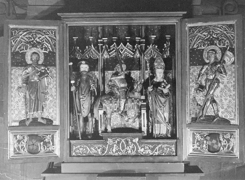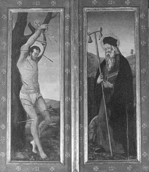 Retable à volets : saint Mathieu, saint Florian (bas-reliefs, intérieur) et saint Etienne, saint Antoine (tableaux, revers)