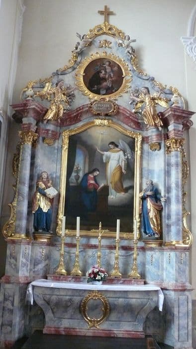 2 autels, 2 retables, 2 tableaux, 4 statues : Annonciation, saint Antoine de Padoue, la Mort de saint Joseph avec le Christ, la Vierge et trois anges, sainte Barbe, sainte Anne, saint Joachim, sainte Marguerite, sainte Catherine (autels secondaires)