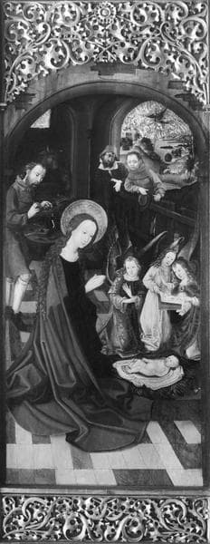 retable du Jugement dernier (triptyque) : Jugement dernier, Christ et saint Jean-Baptiste, Annonciation, Nativité, Adoration des Mages