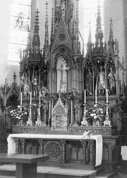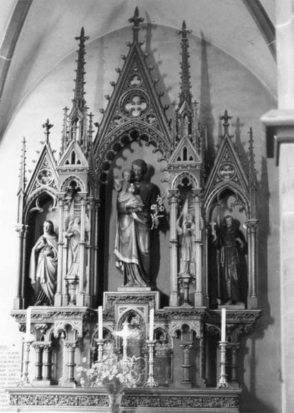 5 autels, chaire à prêcher, 3 confessionnaux, lambris de demi-revêtement