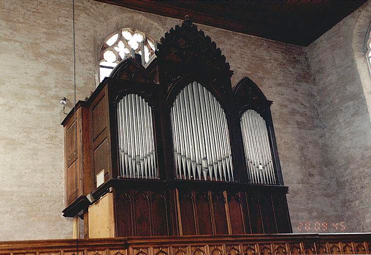 Buffet de style néo-gothique à trois plates-faces en arc brisé bordées de fines colonnes et comportant, au sommet, des couronnements en arc brisé. Panneaux du soubassement et garde-corps de la tribune ornés d'arcs en accolade trilobés. Façade en étain.