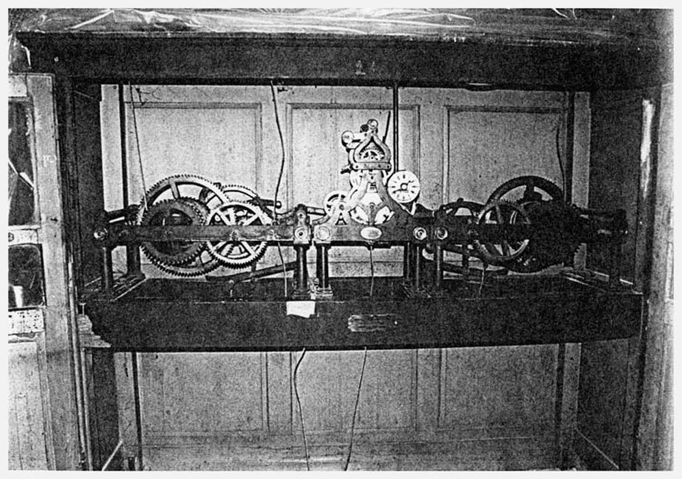 Horloge datant de 1844, remaniée en 1922. Schwilgué avait mis au point un modèle de série que l'on rencontre dans un certain nombre d'églises entre 1850 et 1900.