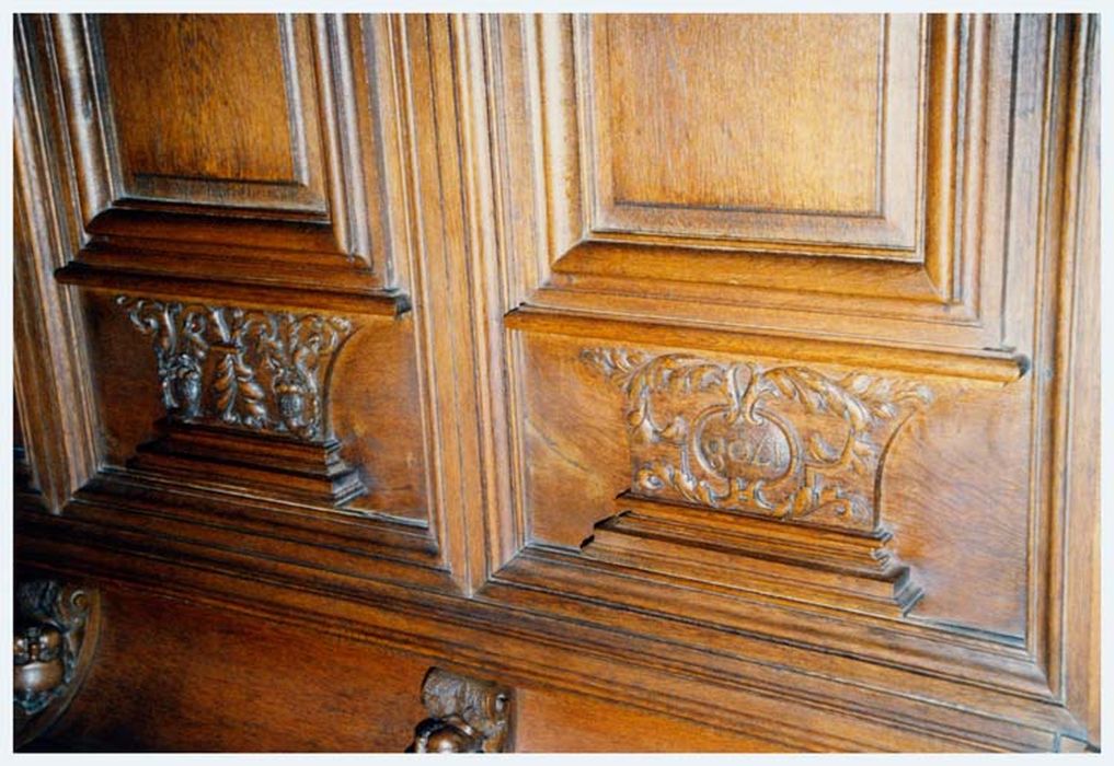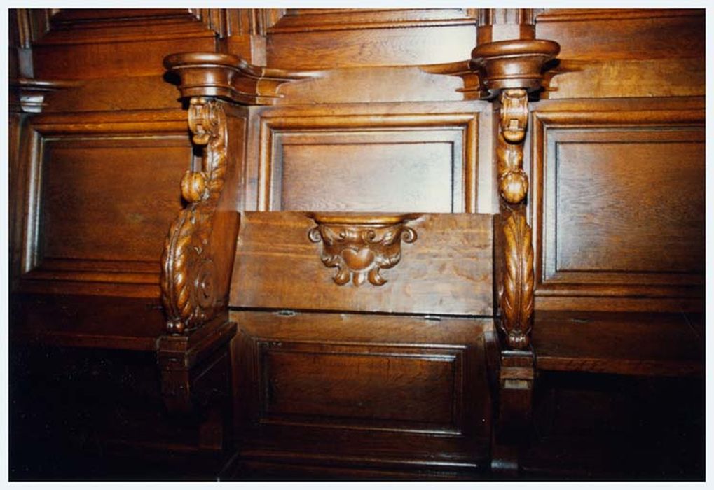 Stalles formant lambris de revêtement, avec console et tabouret d'église. Le lambris de revêtement est couronné par une corniche.