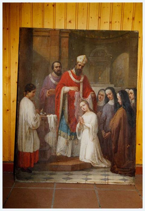Il s'agit d'une commande du chanoine Nicolas Schir, chargé de remettre le monastère en état après son rachat par l'évêché de Strasbourg en 1853. Au cours des grands travaux de restructuration du monastère par l'architecte Robert Danis (1930-1937), un souffle de modernité fait disparaître peintures et mobiliers néo-gothiques qui sont alors remisés.