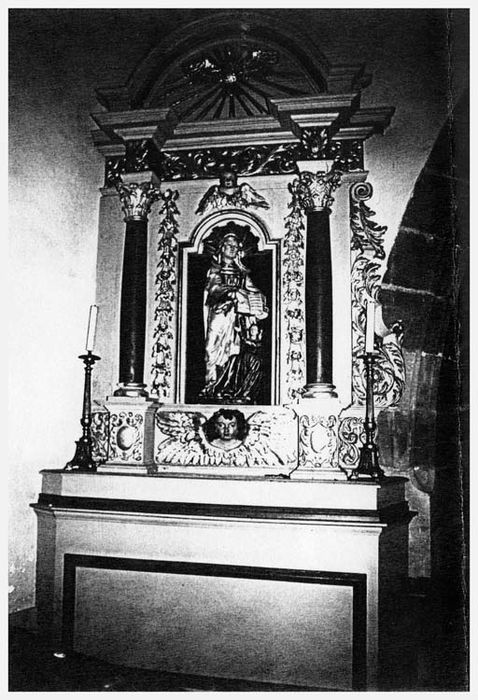 La chapelle est meublée d'un ensemble homogène de trois autels qui pourraient provenir de l'ancienne église de Reichshoffen. Cet autel daterait du début du 18e siècle.