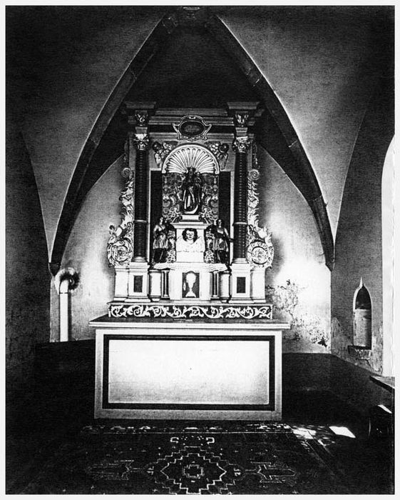 La chapelle est meublée d'un ensemble homogène de trois autels qui pourraient provenir de l'ancienne église de Reichshoffen. Le maître-autel est à la fois composite par ses éléments de dates diverses et probablement amputé de son couronnement d'origine pour pouvoir être logé sous la voûte. La niche centrale, qui devait originellement comporter un autre groupe sculpté, abrit une statue de la Vierge à l'Enfant qui est une copie du 20e siècle de la statue originale actuellement conservée à l'église paroissiale de Reichshoffen. Les deux anges debout sur le soubassement doivent être rapportés. L'ensemble date du tout début du 18e siècle, sauf le décor du gradin et celui du tabernacle qui datent du 19e siècle.