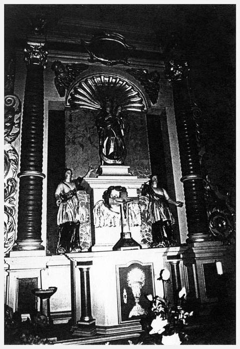 Comme pour les autels latéraux, le tombeau est une simple caisse en bois à peine rehaussée d'une moulure.