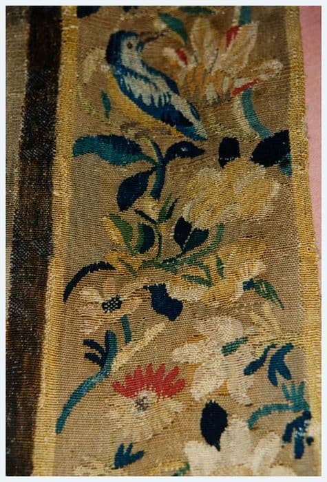 Tapisserie, de haute-lisse, réalisée en lin pour la chaîne et en laine et soie pour la trame.