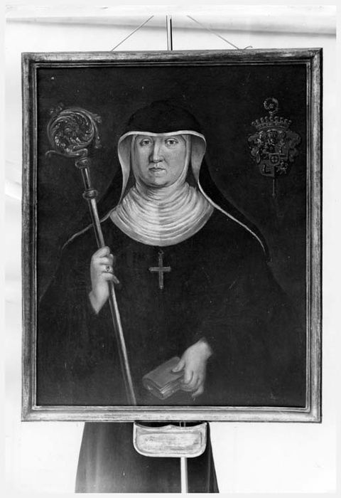 Le tableau fut offert en 1926 à la paroisse par un arrière petit neveu de l'abbesse. Il s'agit de la seule représentation connue d'une bénédictine de Saint Jean.